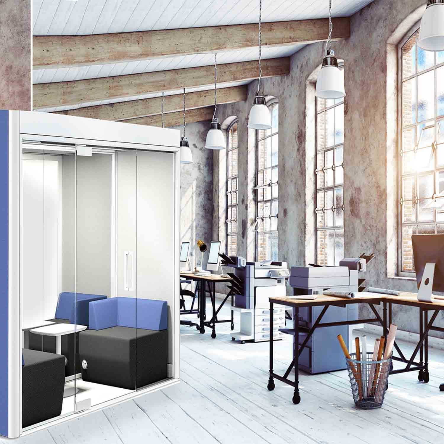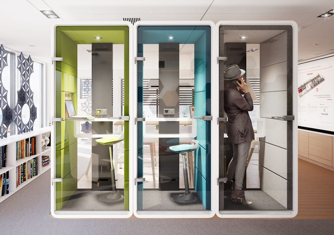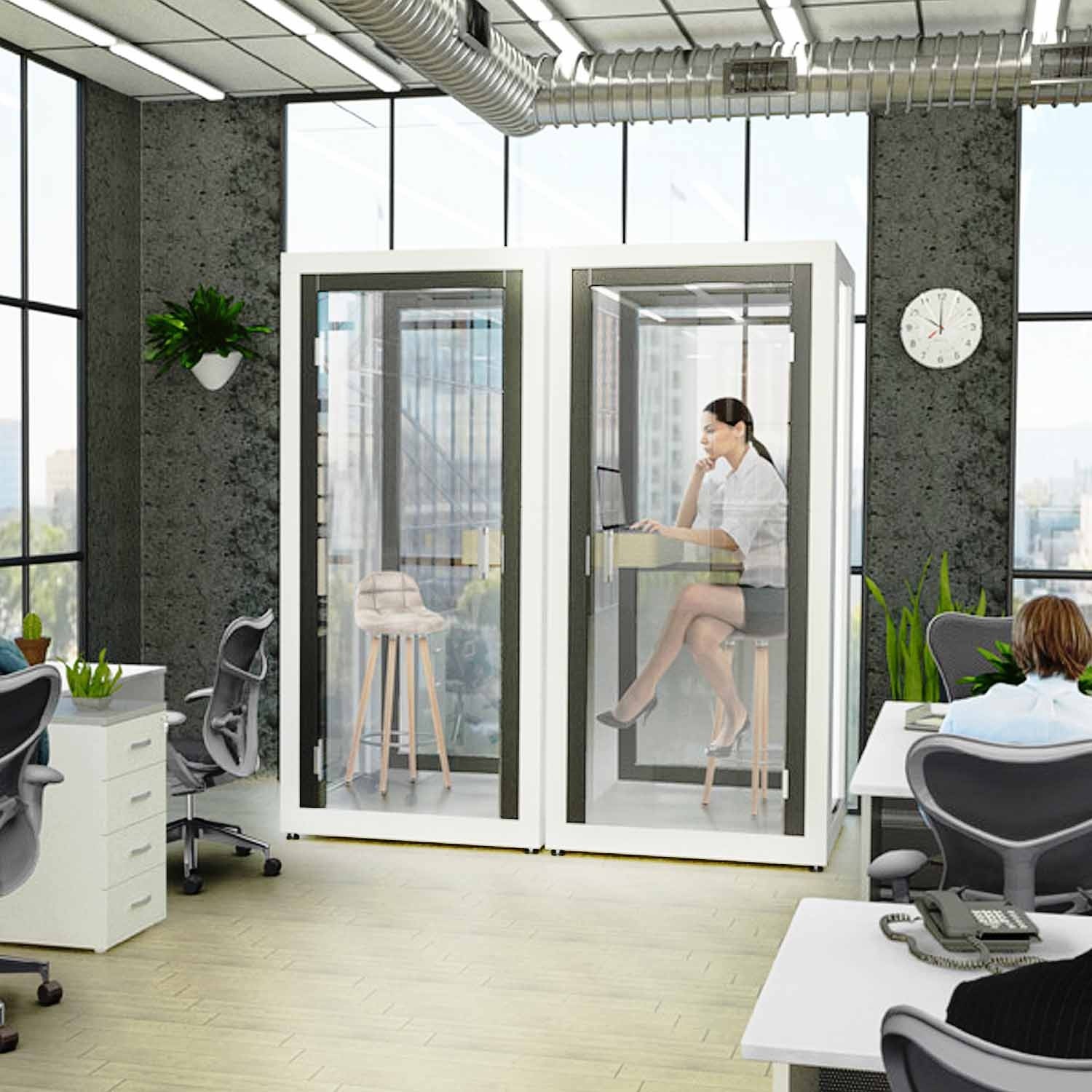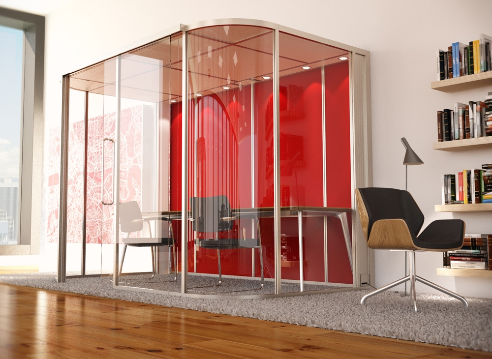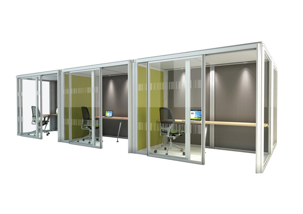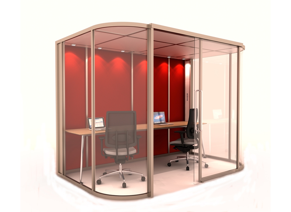 Bağımsız Ofis Bölümleri: Akustik lamine cam ile sessizliği artırılmış ve iç yüzeyi akustik kumaş kaplı paneller ile kaplanan iç mekanı rengarenk zevkinize özel tasarlanmakta olup, şık ve dekoratif tasarımı ile ofislerinizde daha çok sakinliği isteyeceğiniz yenilikçi ürünlerdendir. İçerisinden kullanılan aksesuar ve elektronik aksamlar tamamen size özel üretilmektedir.