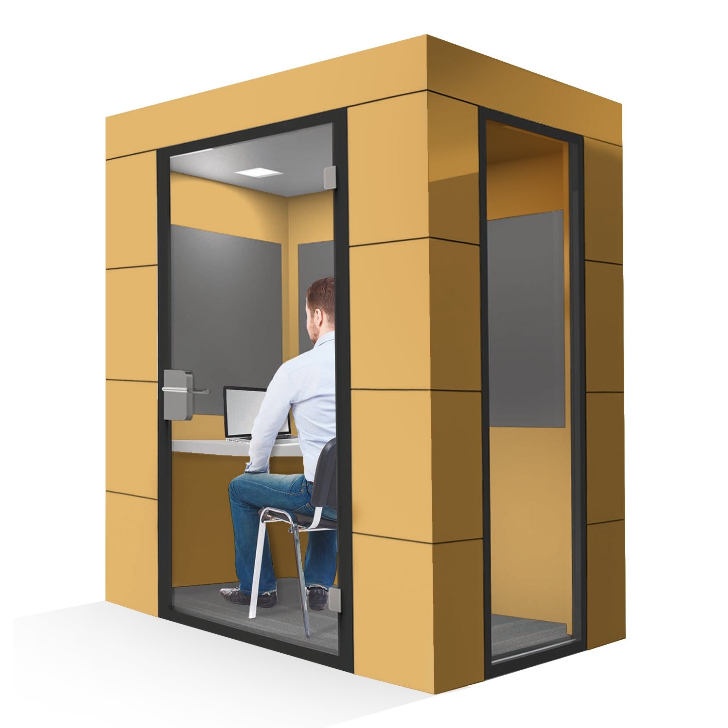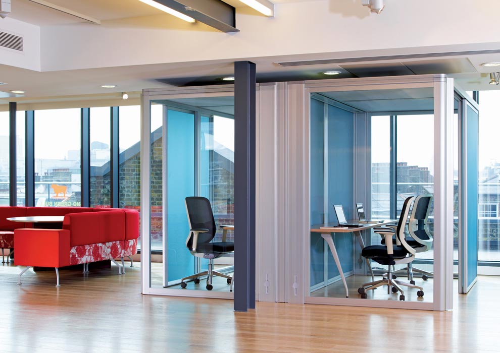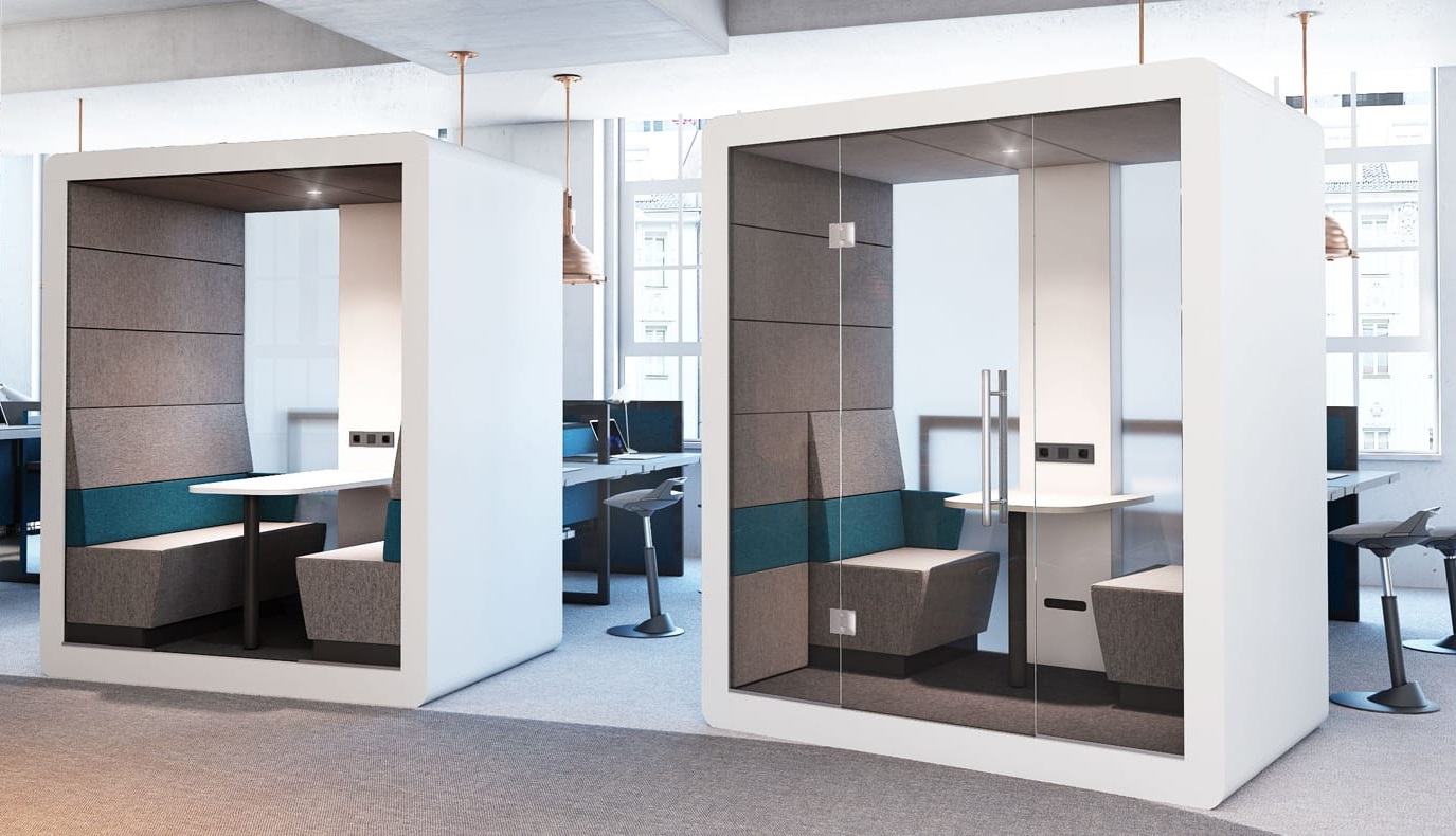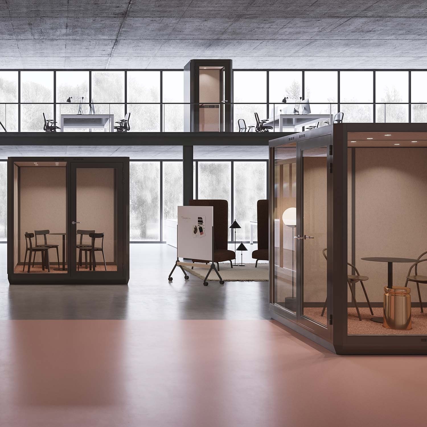 Bağımsız Ofis Bölümleri: Akustik lamine cam ile sessizliği artırılmış ve iç yüzeyi akustik kumaş kaplı paneller ile kaplanan iç mekanı rengarenk zevkinize özel tasarlanmakta olup, şık ve dekoratif tasarımı ile ofislerinizde daha çok sakinliği isteyeceğiniz yenilikçi ürünlerdendir. İçerisinden kullanılan aksesuar ve elektronik aksamlar tamamen size özel üretilmektedir.