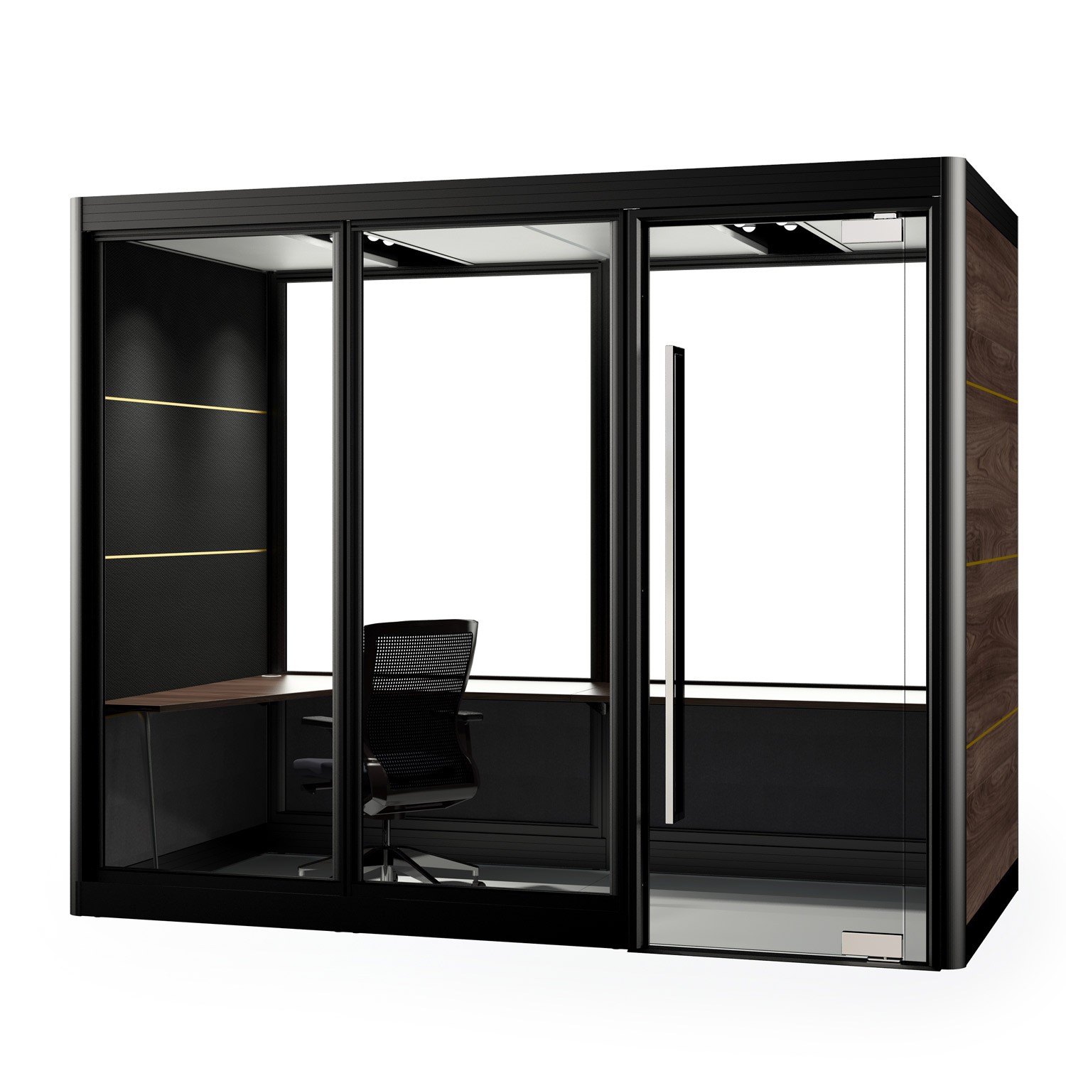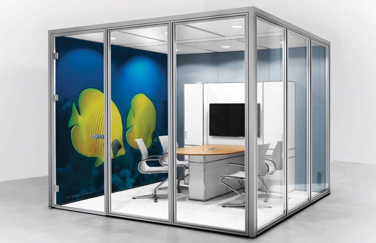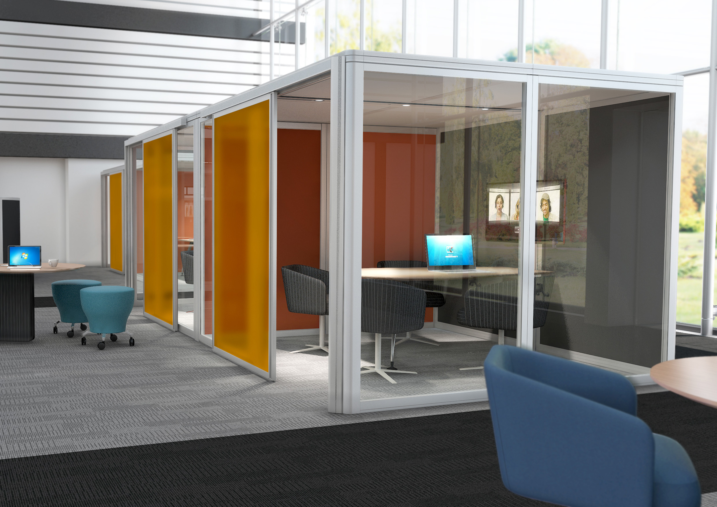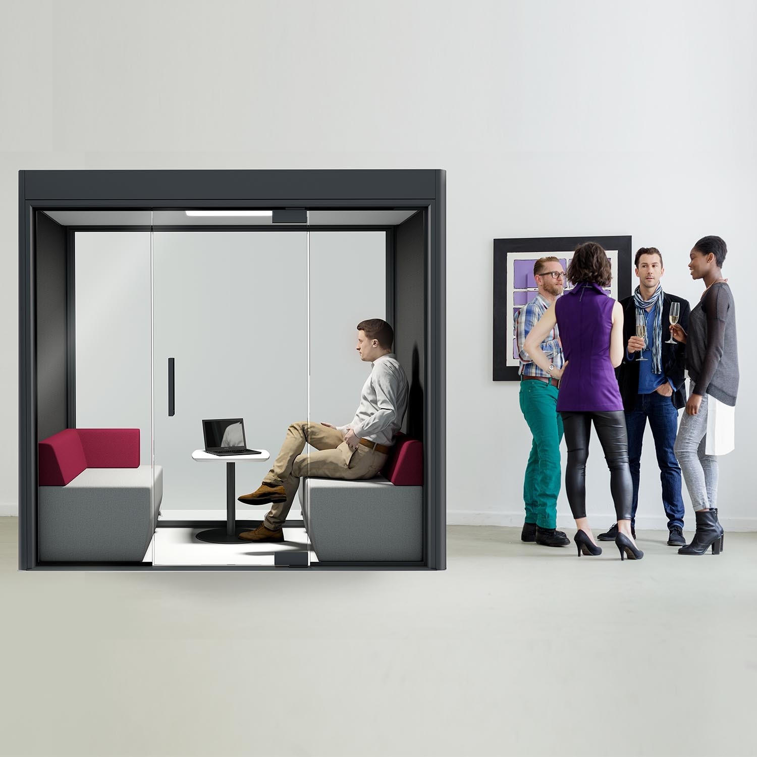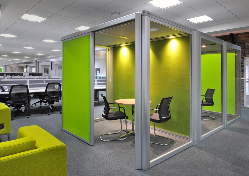 Bağımsız Ofis Bölümleri: Akustik lamine cam ile sessizliği artırılmış ve iç yüzeyi akustik kumaş kaplı paneller ile kaplanan iç mekanı rengarenk zevkinize özel tasarlanmakta olup, şık ve dekoratif tasarımı ile ofislerinizde daha çok sakinliği isteyeceğiniz yenilikçi ürünlerdendir. İçerisinden kullanılan aksesuar ve elektronik aksamlar tamamen size özel üretilmektedir.