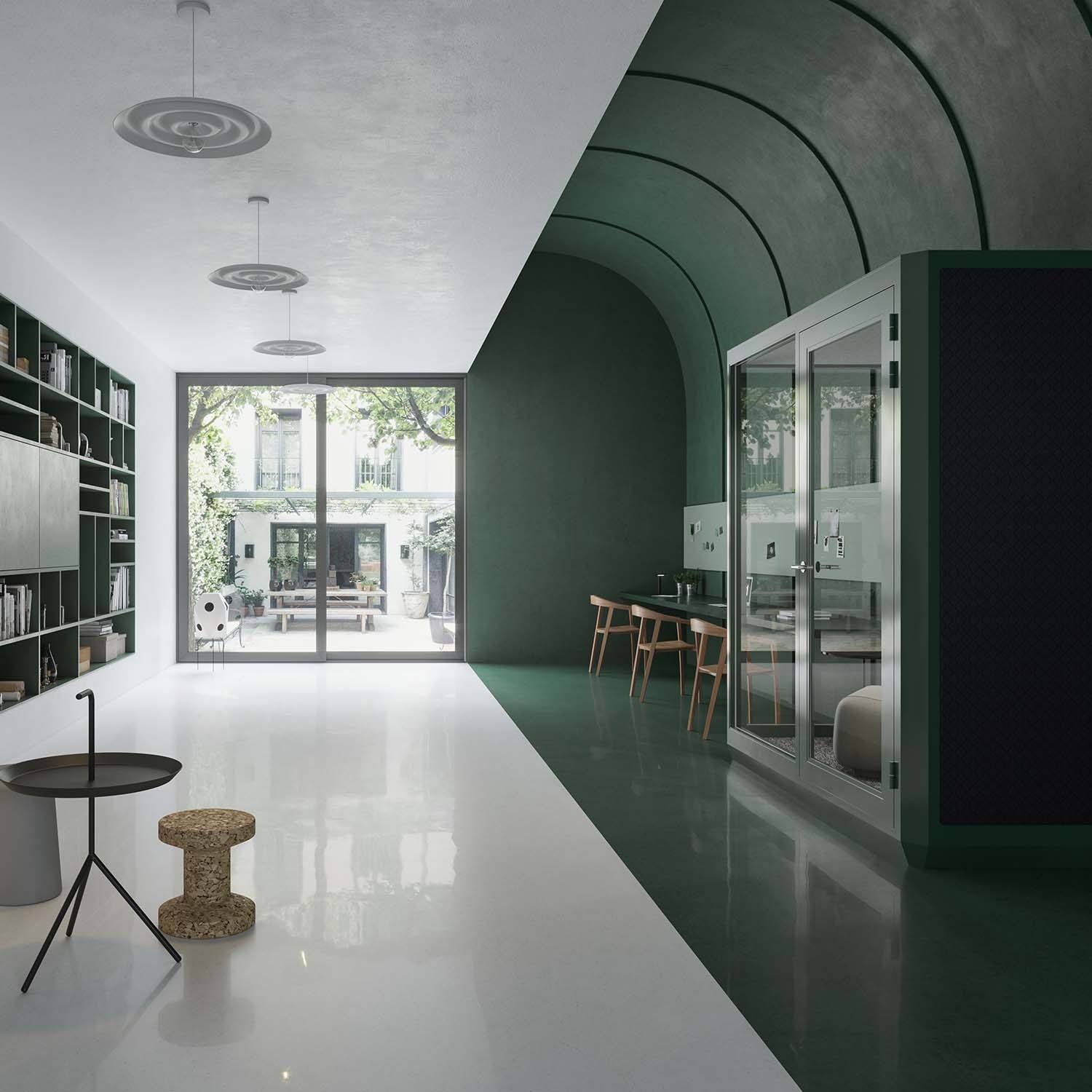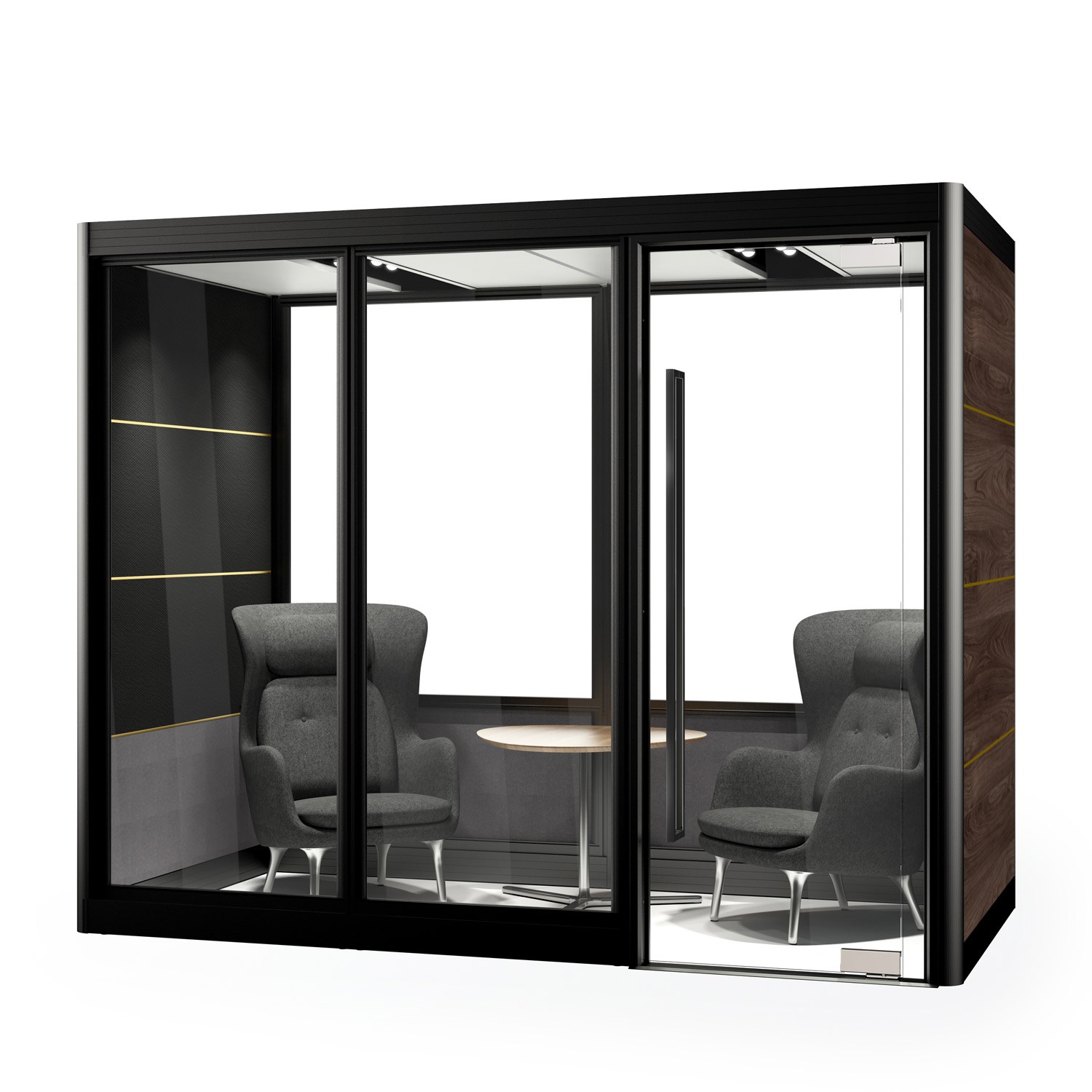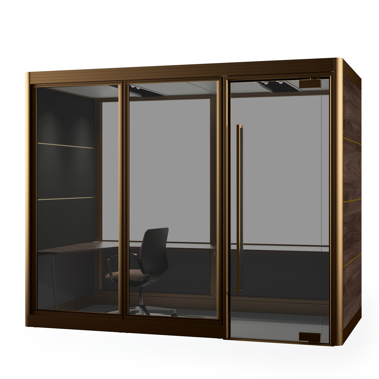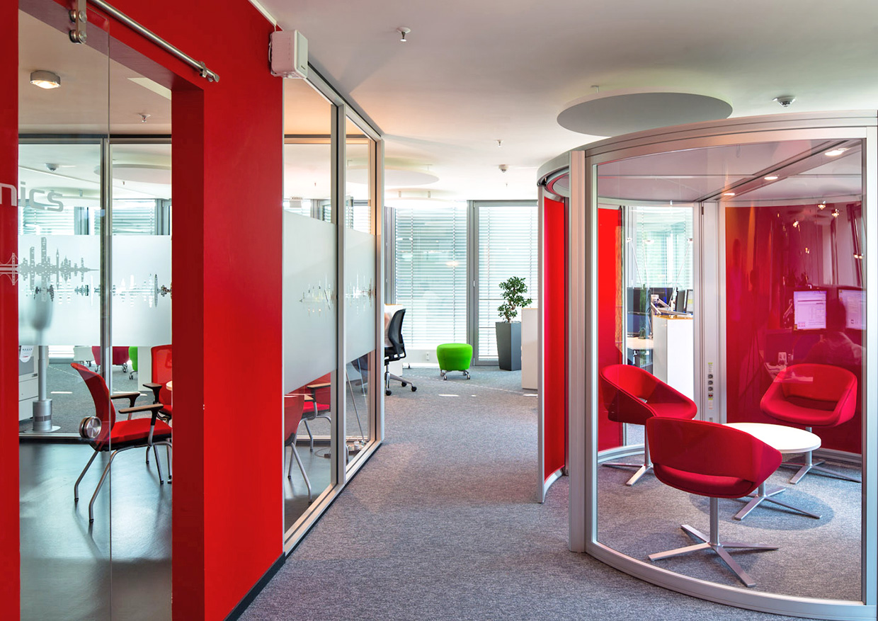 Bağımsız Ofis Bölümleri: Akustik lamine cam ile sessizliği artırılmış ve iç yüzeyi akustik kumaş kaplı paneller ile kaplanan iç mekanı rengarenk zevkinize özel tasarlanmakta olup, şık ve dekoratif tasarımı ile ofislerinizde daha çok sakinliği isteyeceğiniz yenilikçi ürünlerdendir. İçerisinden kullanılan aksesuar ve elektronik aksamlar tamamen size özel üretilmektedir.