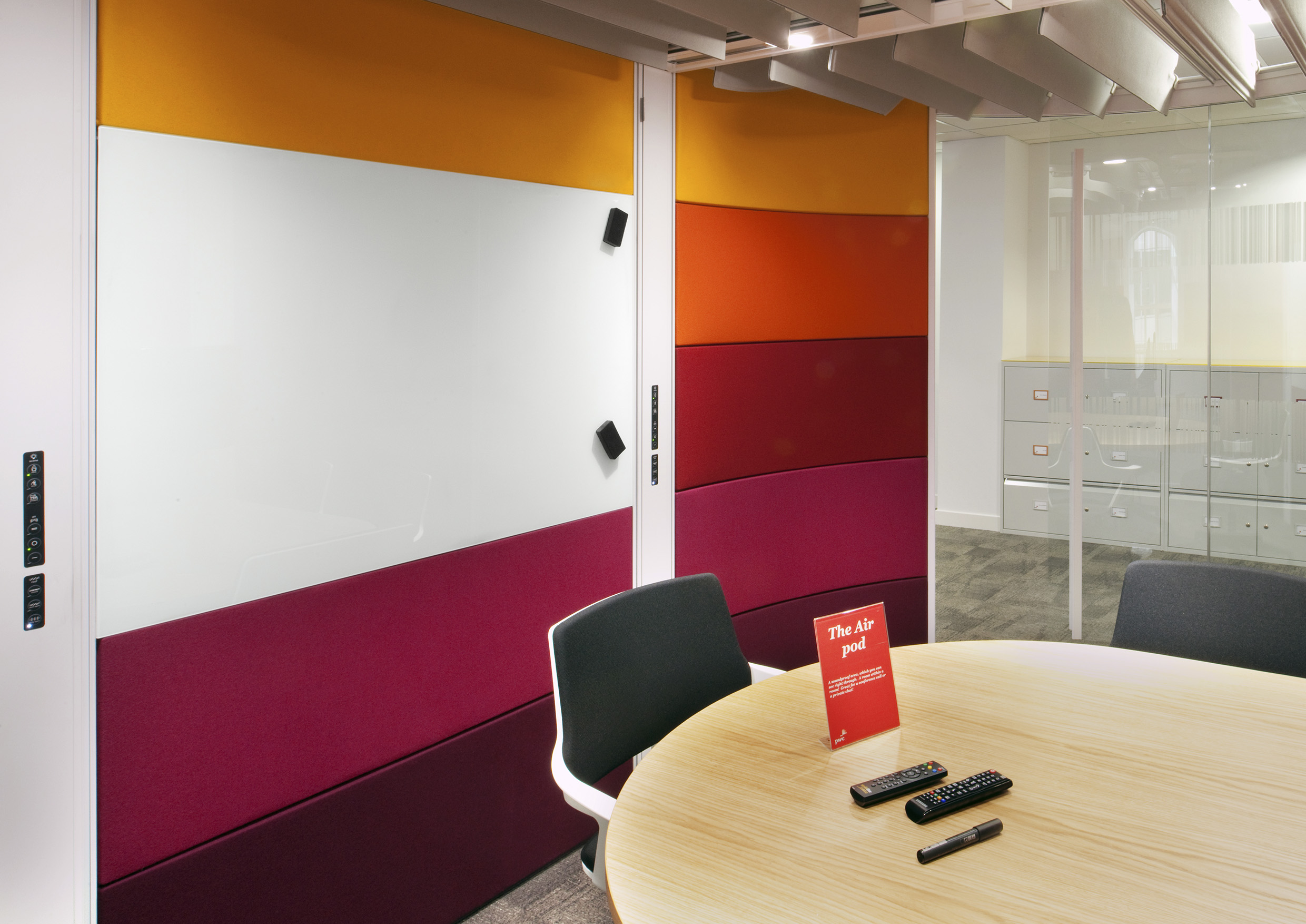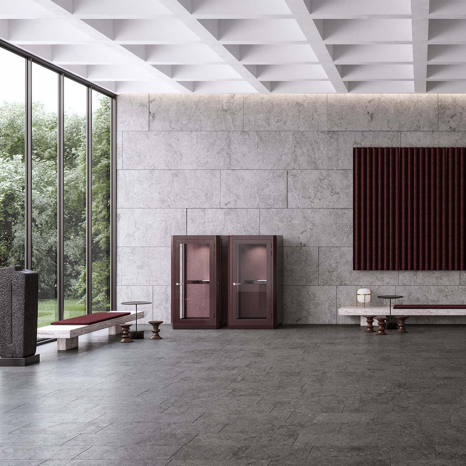 Bağımsız Ofis Bölümleri Detay : Kumaş kaplı akustik paneller farklı geometrik şekillerde ve kalınlıklarda kombine üretilebilmektedir.