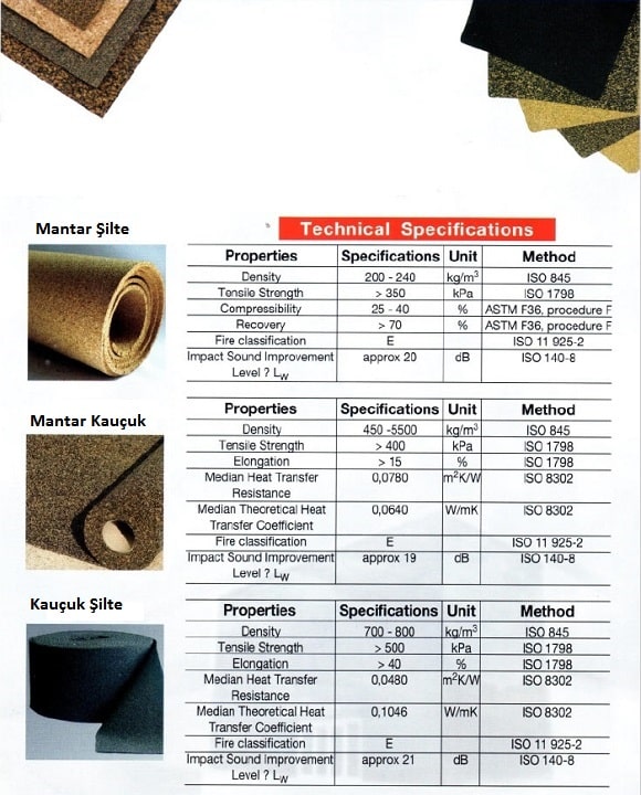 Emn Rubber Cork : Mantar cork rulo şilteler, İthal ürün olup ( rubber underlay cork ) mantar şilte fiyatları ve çeşitlerinin bulunduğu tanıtım bilgi makalesidir. Emincork ® Zemin parke döşeme altı arası yer taban ses yalıtım malzemeleri izolasyon şilteleri. Emincork ® Mantar cork, Akdeniz kıyı bölgesinde, yani Atlantik okyanusu kıyılarındaki alanlarda mantar meşesi ağaçlarının kabuklarından elde edilen doğal bir izolasyon ürünüdür. Mantar cork ( rubber cork ) son atmış milyon yıldır batı Akdeniz çanağında yetişen ve çok tanınmış ismiyle Emincork ® Mantar Meşesi ( rubber cork ) ismiyle bilinen ( Latince bilimsel ifadesi Quercus Suber )olan ağacların kabuğuna verilen isimdir. Emincork ® Mantar şiltesi, dünya yüzündeki eşsiz ekolojik sistemi destekleyen mantar meşesi (rubber cork) çok geniş bir ürün yelpazesi ile zengin ekonomik değerlerin oluşturanlardandır. Mantar şilte, rubber cork meşesi ormanları, Portekiz ‘de 720.000 hektarlık sahayı kapsamaktadır.Emir akustik web sayfamızdan mantar Şilte fiyatları öğrenebilirsiniz. Mantar şilteleri, döşeme altı yer ve şap altı ile parke altı zemin ses yalıtımı ve vibrasyonunda kullanılan akustik şilte formunda ses ve ısı yalıtım levhalarıdır. Emincork ® Mantar cork şilte diye bilinen bu akustik zemin ses yalıtımı levhaları, doğal ahşap ( ağaç ) kabuğundan üretilmektedir, ve son derece sağlıklı ve çevreye zarar vermeyen yeşil dostu ürünler arasındadır. Mantar levhalar, kauçuk katkılı veya klasik mantar yoğunluk olarak iki çeşite ayrılır. Rubber mantar levha veya kauçuk katkılı mantar şilte levhalardır. Emincork ® Bu mantar şilteler rulo şeklinde parekende satılmaktadır, 4 mm ile 10 mm arasında kalınlıklarda üretilmektedir.Düyanın heryerine bu ürünleri Toptan ihraç Emincork ® Mantar Cork Şilte Levha İhracat İthalat Firması etmekteyiz. Rubber mantar cork şilte / Emincork ® ( rubber underlay under screed ) Rubber Kauçuk Mantar Şilte: Zemin döşeme altı yer ve parke şap altlarında uygulanan mantarcork ve kauçuk rubber şilteler darbe titreşim ve vibrasyon özelliğine sahip anti bibrasyon ses izoalasyon malzemeleridir. Emincork ® Mantar şilte şap parke ve halı altı arası zemin ses izolasyon malzemeleri – darbe & gürültü ve titreşim kontrolü yanı sıra ısı izolasyonuda sağlar. Emincork ® Unutmayalım ses yalıtımında etkili olan malzemeler, ısı yalıtımında iki kat performans gösterir. Mantar rulo şilte İstanbul satış ofisi Emir akustik firmasıdır. Rulo ve Levhalar Rulo ve Levha Mantar ; İnşaat sektöründe ve akustik izolasyonda, özellikle zemin şap parke altı ve arası uygulamalarında mükemmel ısı izolasyonu sağlayan, ses ve darbe izolasyonu özelliği üst seviyede olan mantar meşesi ağacının kabuğunun parçalara bölünmesinden sonra tekrar preslenerek dilimlenmesi ile elde edilmektedir. Stoklarımızdaki tüm mantar rulo şilteler 40 m² olup, özel ölçü isteğe bağlı üretilmektedir.