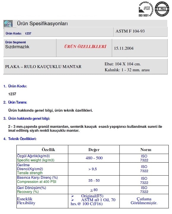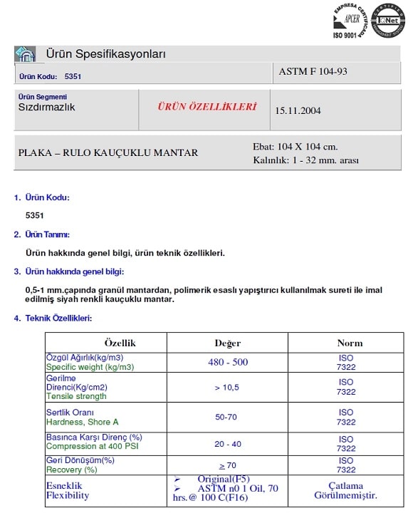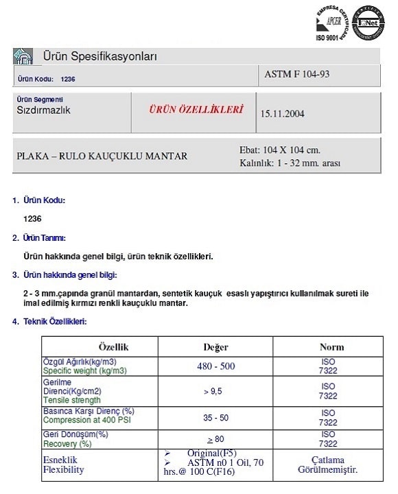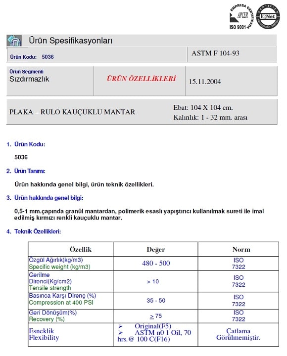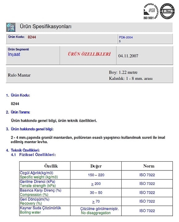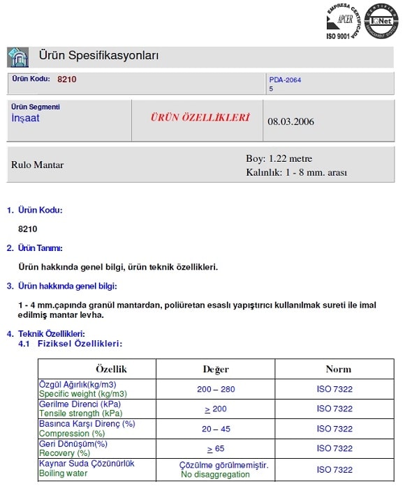 Emn Rubber Cork Yanmazlık : Parke Altı mantar şilte rulo Yanmazlık özelliği yoktur.