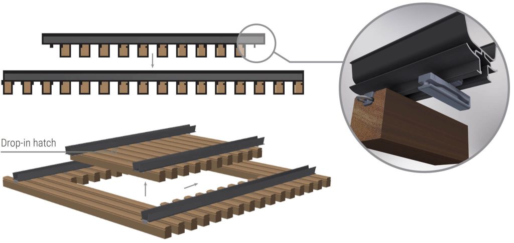 Açık Lineer Panel Sistemleri : Her türlü iç yapı uygulamalarında dekoratif ve akustik amaçlı kullanılır. Estetik, montaj ve uygulama noktalarında Hook-on Sistemi ve Lambri Montaj Sistemi seçenekleri sunmaktadır. Uygulanabilir Malzemeler : Masif, Doğal Ahşap Kaplamalı MDF , Laminat Kaplamalı MDF Standart Levha (Lata) Ebatları Kalınlık : 12 ve 18 mm En : 100, 150 ve 200 mm Boy : 1200 ve 1500 mm Standart Modül (Plaka) Ebatları En : 600 mm Boy :1200 mm Boy : 1200 ve 1500 mm